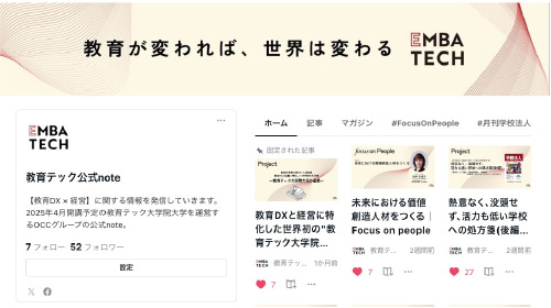 【教育DX × 経営】に関する情報発信している。教育テックに関わる著名人100名へのインタビュー取材や講演会などの事後レポートを毎週更新中。